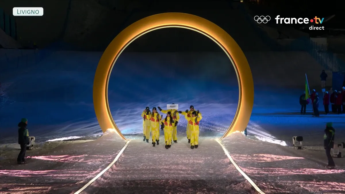 🌍 L'aspect multi-site de la parade des nations qui a bien fonctionné et surtout le décors avec la piste en fond à Livigno (sans oublier l'anneau comme point d'entrée partout)