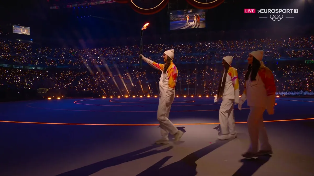 🎶 La voix d'Andrea Bocelli pour accompagner l'entrée de la flamme olympique dans le stade (ça aurait été épique s'il l'avait gardé pour l'allumage)