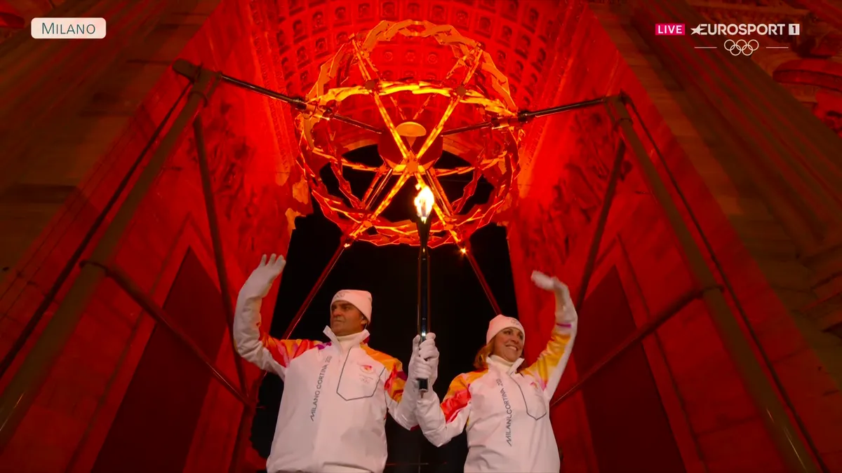 🔥 Et enfin, l'allumage des deux chaudrons par Sofia Goggia à Cortina et le duo Alberto Tomba et Deborah Compagnoni à Milan