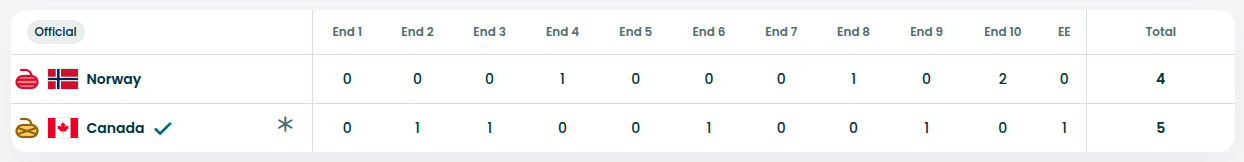 🥌 (H) La Norvège 🇳🇴 bat le Canada 🇨🇦 et se qualifie pour les demi-finales qui auront lieu ce soir (19h05) ; les affiches seront : 🇨🇭🇳🇴 et 🇨🇦🇬🇧 #Milanocortina2026