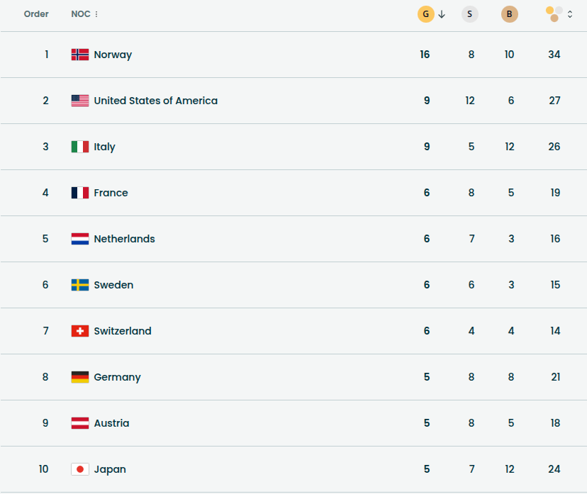 Toujours sur la glace, Jordan Stolz 🇺🇸 cherchera à remporter sa 3è médaille d'or sur le 1500 m en Patinage de vitesse. Le Curling clôturera le round robin hommes et femmes et aura les demi-finales hommes dans la soirée, alors que le Hockey sur glace attribuera ses premières médailles avec notamment la finale femmes et le choc Etats-Unis 🇺🇸 / Canada 🇨🇦. Les américaines sont les grandes favorites dans cette 5è finale consécutive entre les deux voisins.