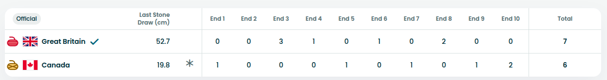 🥌 (F) la Grande-Bretagne 🇬🇧 bat le Canada 🇨🇦 7-6