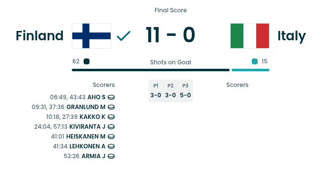 🏒 (H - Gr.B) La Finlande 🇫🇮 étrille l'Italie 🇮🇹 11-0 !