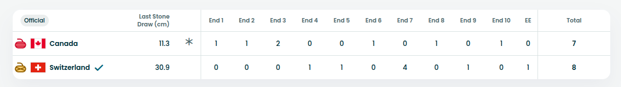 🥌 (F) La Suisse 🇨🇭 bat le Canada 🇨🇦 8-7 en extra end