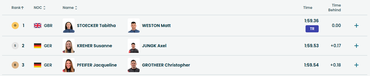 Matt Weston 🇬🇧 ajoute un nouveau titre 🥇à Milan-Cortina après l'individuel, il remporte l'épreuve par équipe mixte avec Tabitha Stoecker 🇬🇧. La paire réalise le record de la piste en 1:59.36.